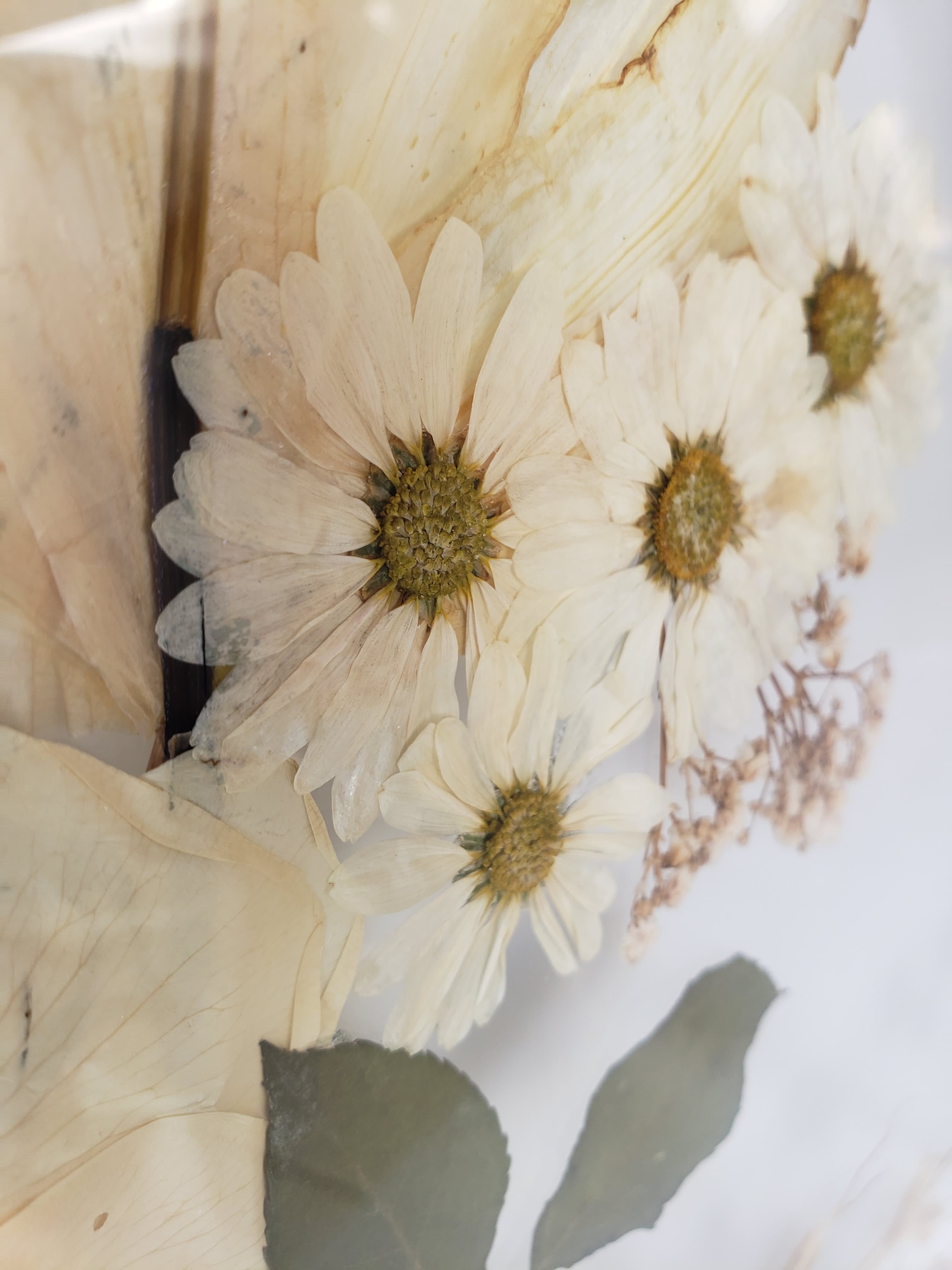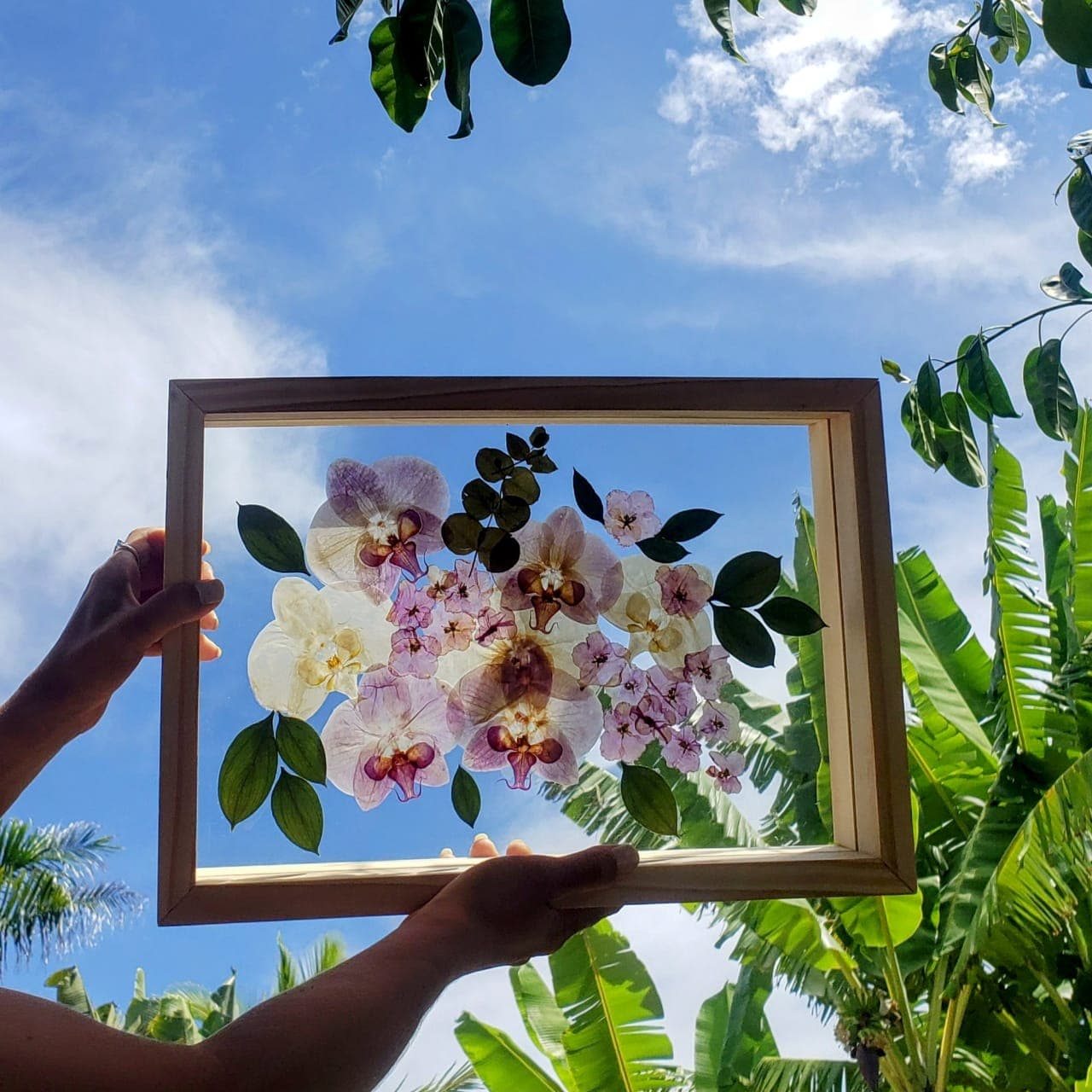 O processo transforma o efêmero em permanente: pétalas que repousam entre vidros, protegidas e cuidadas, agora fazem parte de uma obra única. Mais do que um registro, é uma maneira de eternizar o que floresceu no seu dia. Uma memória viva, feita para atravessar os anos.